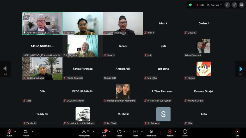 Alhamdulillah, kajian bertajuk Husnul Khatimah yang diselenggarakan oleh Daarut Tauhiid Memorial Park (DTMP) yang berada di bawah Yayasan Daarut Tauhiid Khadimul Ummat bekerja sama dengan Yayasan Dunia Sementara Akhirat Selamanya telah berlangsung dengan lancar pada Sabtu, 25 April 2026. Kegiatan ini dilaksanakan secara daring melalui aplikasi Zoom Meeting dan diikuti oleh peserta program DTMP dari berbagai daerah, di antaranya Jakarta, Bogor, Bekasi, dan Bandung.