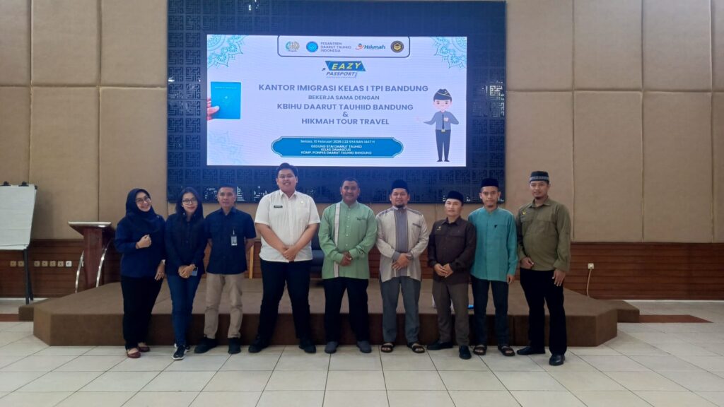 Bandung, pesantrendt.id — Alhamdulillah, kegiatan Layanan EAZY Passport untuk pembuatan paspor umrah dan haji telah sukses dilaksanakan pada Selasa, 10 Februari 2026. Program ini merupakan hasil kerja sama antara Kantor Imigrasi Kelas I TPI Bandung, KBIHU Daarut Tauhiid Bandung, VIVA College, serta Hikmah Tour & Travel, sebagai bentuk sinergi dalam memberikan kemudahan layanan keimigrasian bagi masyarakat.