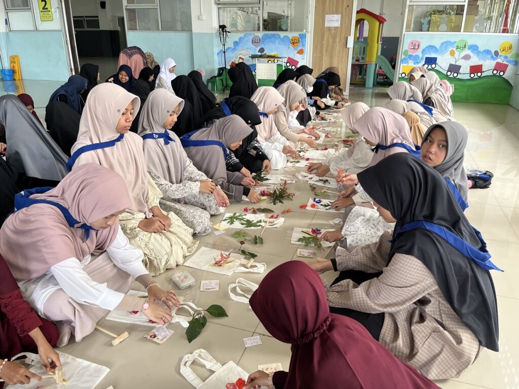 Dalam workshop ini, peserta mendapatkan pengenalan dasar Eco Printing, demonstrasi teknik, hingga praktik langsung menyusun motif dan proses pewarnaan menggunakan teknik pounding. Memanfaatkan daun, bunga, dan unsur alam lainnya, peserta diajak melihat bagaimana ciptaan Allah dapat menjadi sumber kreativitas sekaligus media pembelajaran ramah lingkungan.