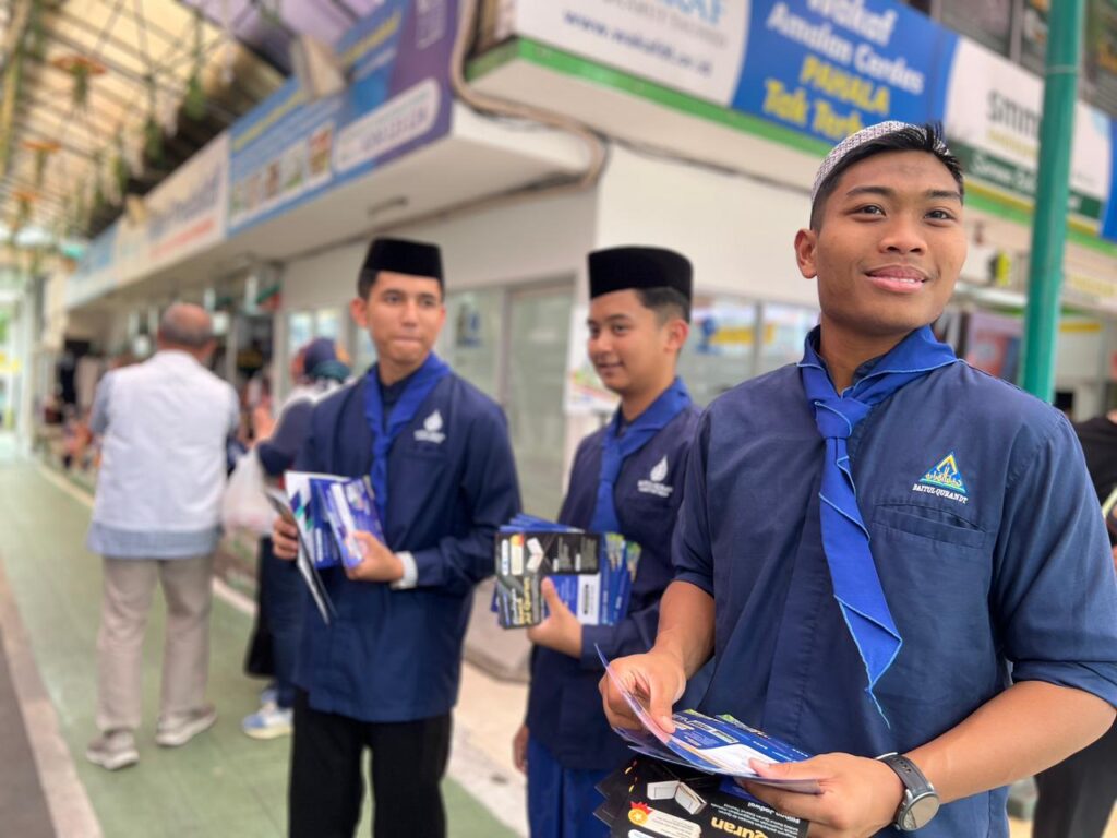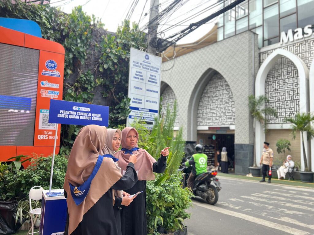 Selain menjalankan khidmat, para santri juga melakukan ikhtiar dakwah dengan membuka ruang informasi dan silaturahmi bersama jamaah yang hadir. Melalui kesempatan tersebut, mereka turut mengenalkan program pendidikan tahfidz yang ada di Baitul Quran Daarut Tauhiid, sebagai bagian dari upaya menjemput dan menyiapkan generasi penghafal Al Quran berikutnya.